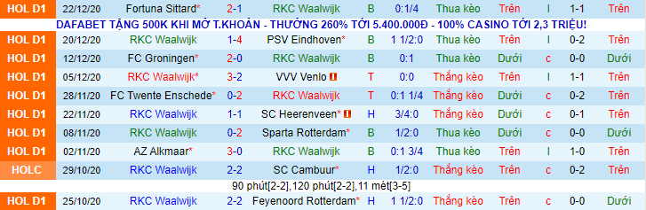 + Lịch sử đối đầu Waalwijk vs ADO Den Haag