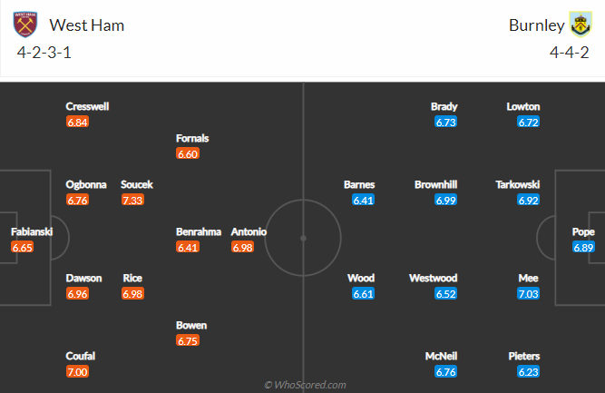 Đội hình dự kiến West Ham vs Burnley