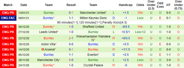 + Thống kê 10 trận gần nhất của Burnley