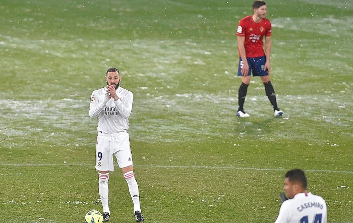 Trước khi gặp Osasuna, Real đã bị cầm chân tại sân bay ở Madrid suốt 4 tiếng liền do thời tiết xấu. Hệ quả là đoàn quân của Zidane đã bị đối thủ xếp áp chót BXH buộc phải chia điểm trong trận đấu mà các chân sút bên phía đội khách như Karim Benzema thi đấu rất cóng chân.