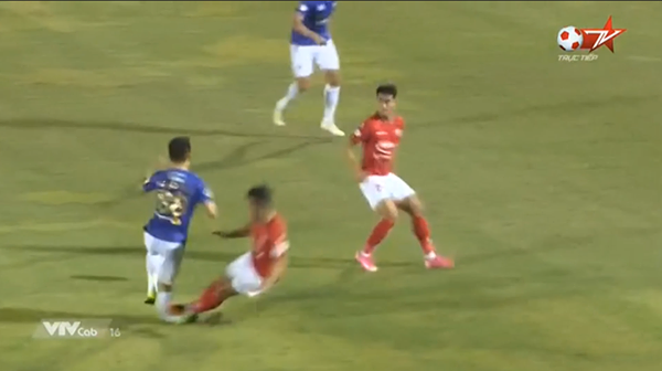 Cận cảnh pha vào bóng của Hoàng Thịnh khiến Hùng Dũng gãy gập chân