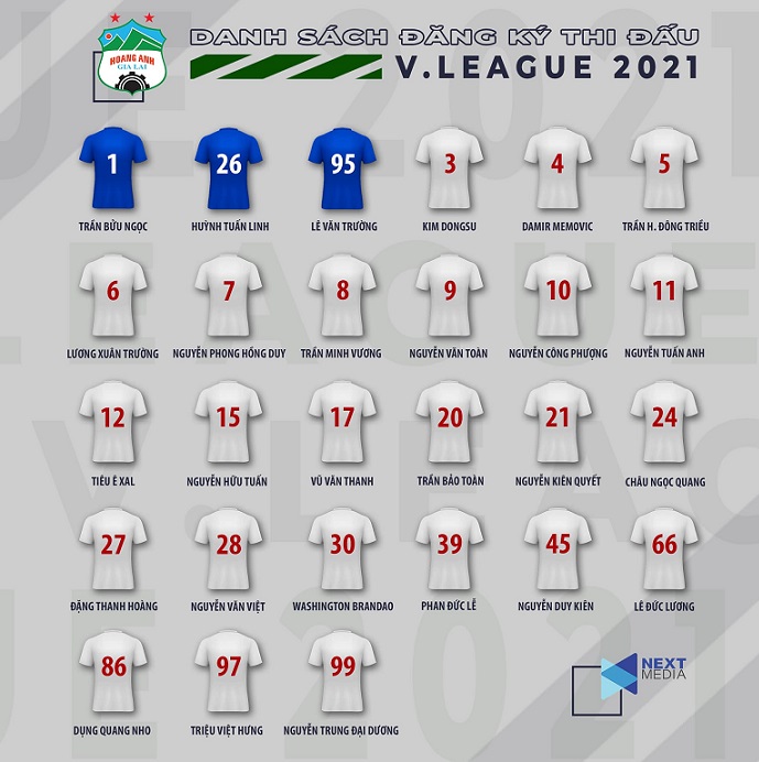 Danh sách đăng ký cầu thủ dự V-League 2021 của HAGL