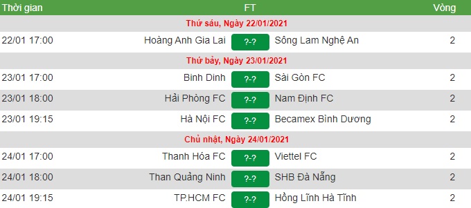 Lịch thi đấu vòng 2 V-League 2021