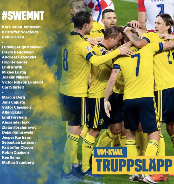 Danh sách tập trung tháng 3/2021 của ĐT Thụy Điển